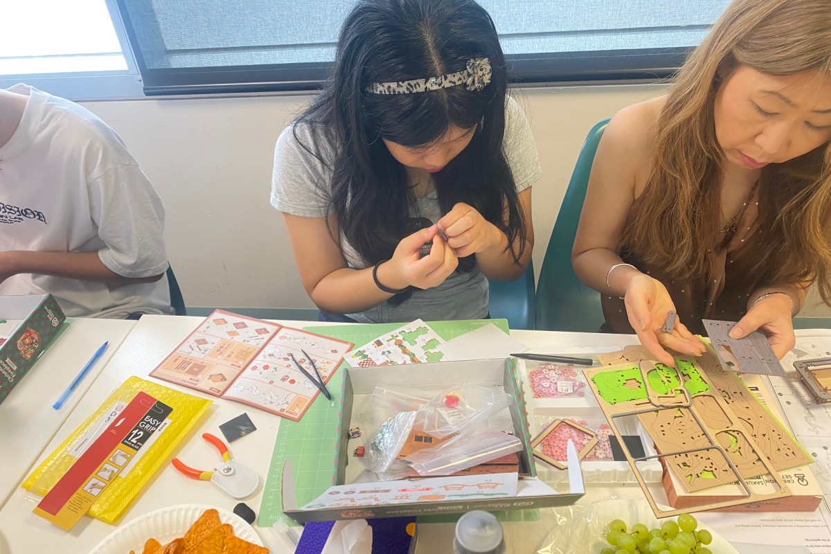 Crafters enjoying a calm and focused building moment at Robotime Melbourne meetup