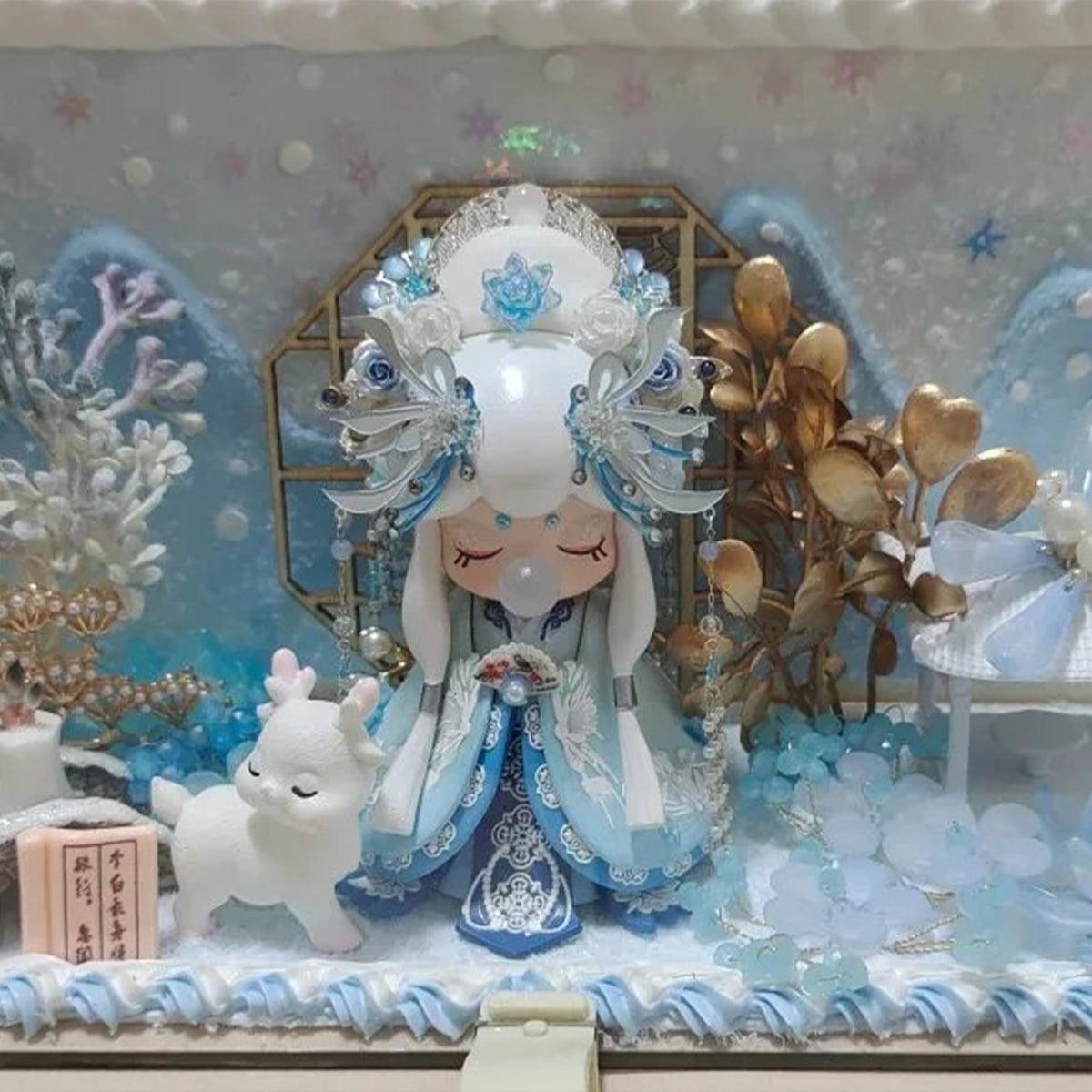Absolutely in love with this stunning little scene! 🩵❄️ The details on the figure are incredible – from the delicate crown to the icy blue robe. I can’t stop admiring the soft snowy background and that adorable deer companion. It feels like a magical winter fairytale came to life on my shelf.