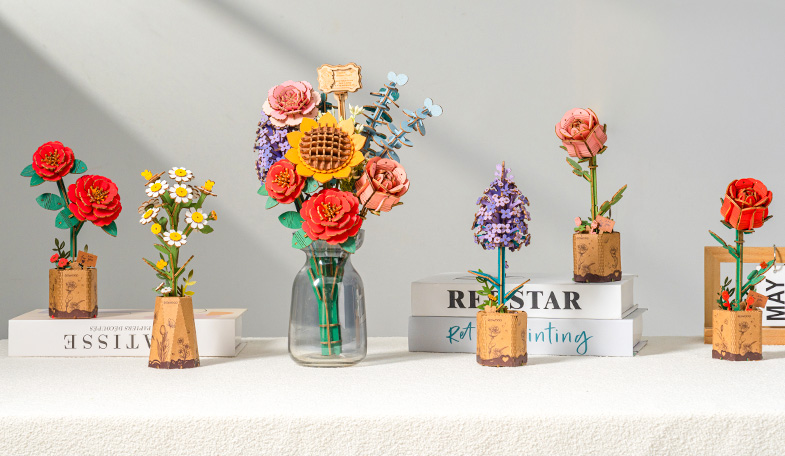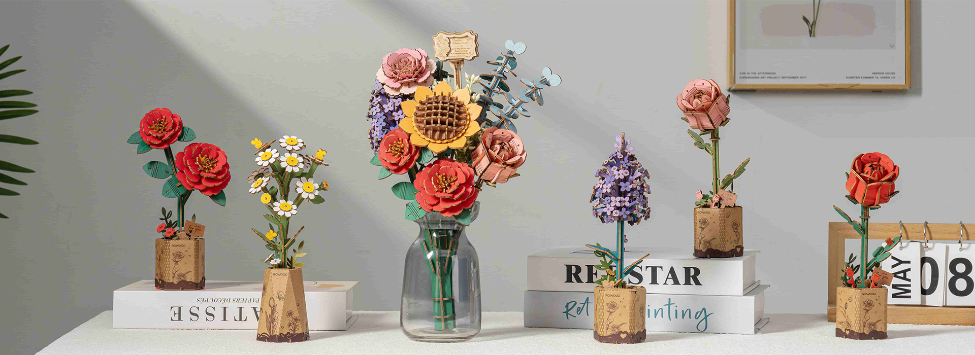 Rowood Wooden Bloom Craft series captures the most beautiful moments of flowers in bloom. Each flower is made up of finely crafted, colored wooden pieces, and once assembled, you'll have a bouquet of flowers that can last forever - the perfect gift or home décor.
