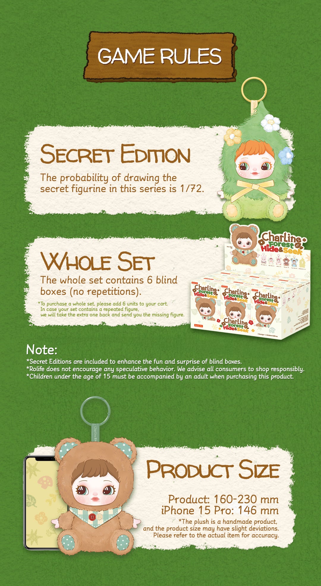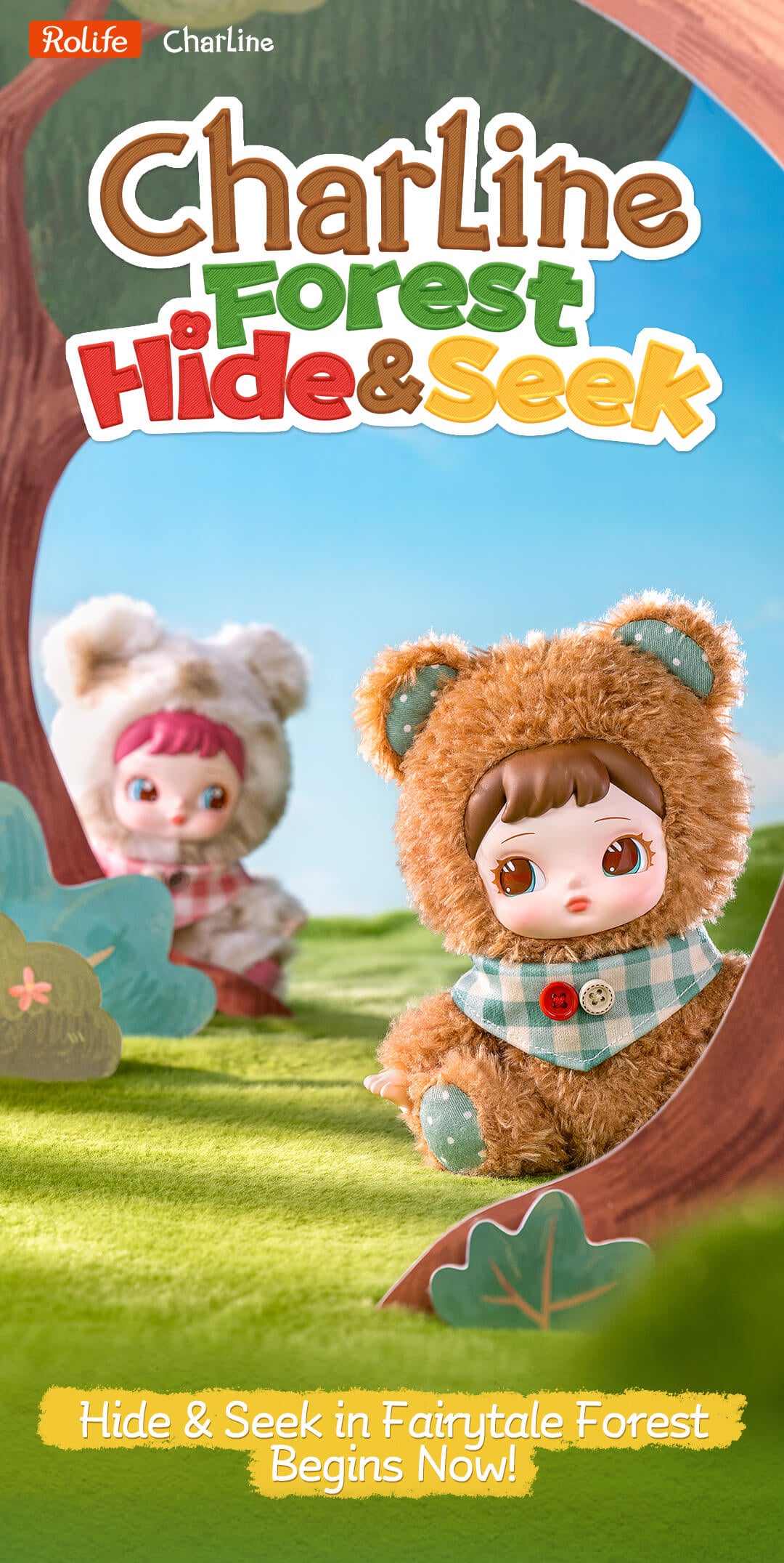 Cachez-vous dans une forêt de contes de fées avec la boîte surprise en peluche Rolife Charline��6 personnages câlins plus une édition cachée rare 1:72, parfaite pour les fans de surprises mignonnes et d'aventures douces et magiques.