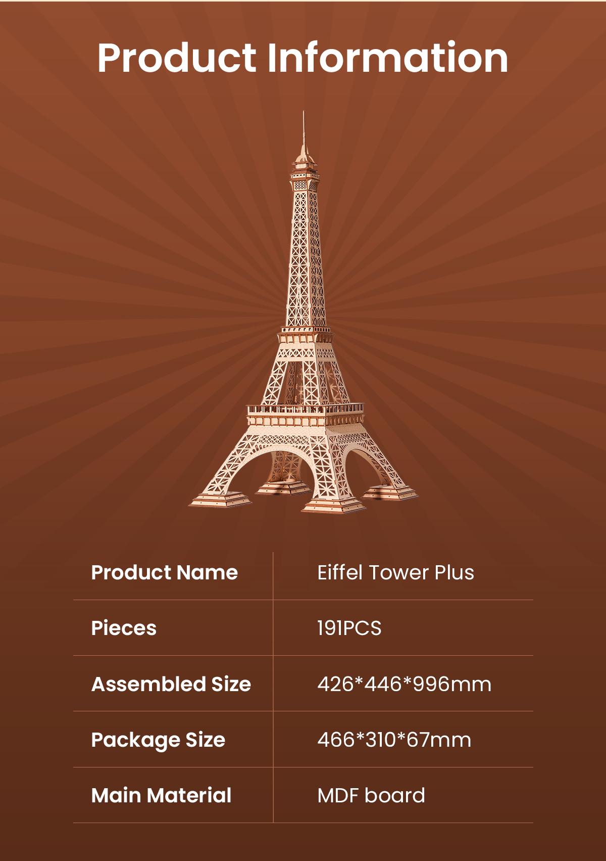 Rolife 3D Wooden Puzzle - Eiffel Tower Plus TGC02
