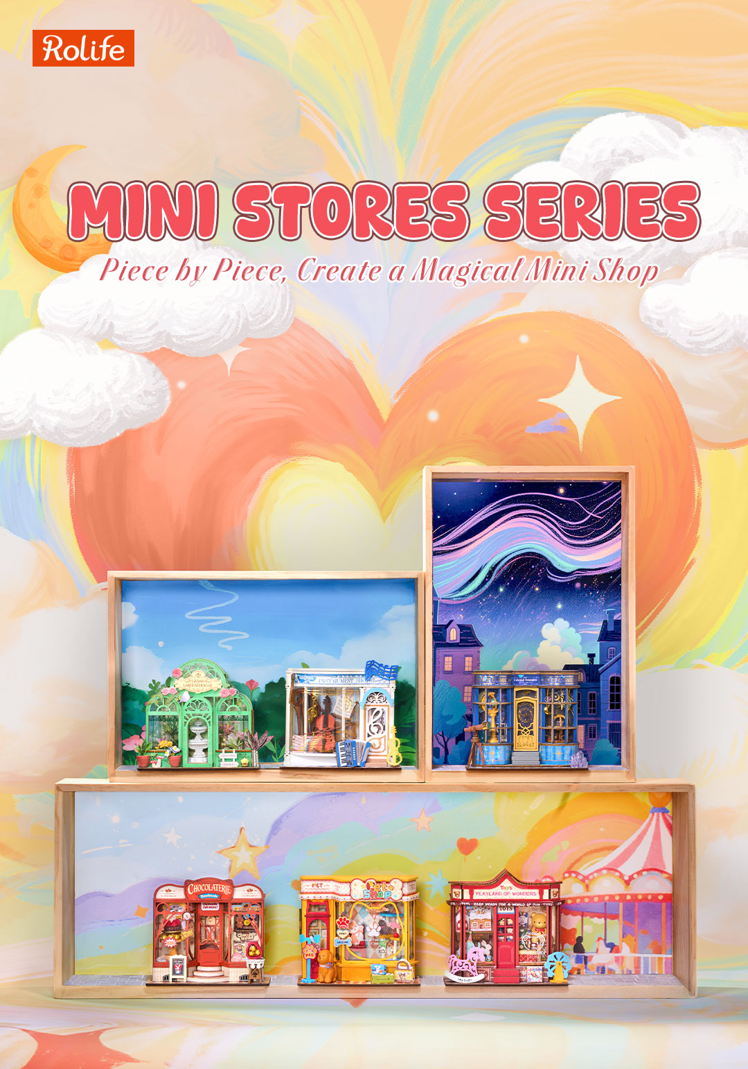 Build this cheerful miniature house kit from Rolife's Tiny Stores collection featuring bright colors, playful details, and lots of nostalgia.