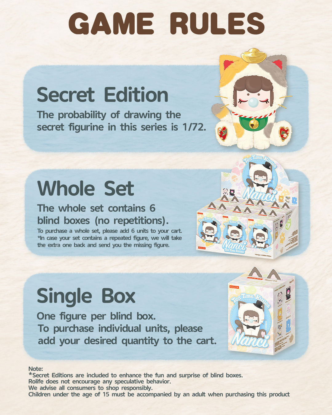 Rolife Nanci's Tea Time Kitties Surprise Plush Dolls MNDXX